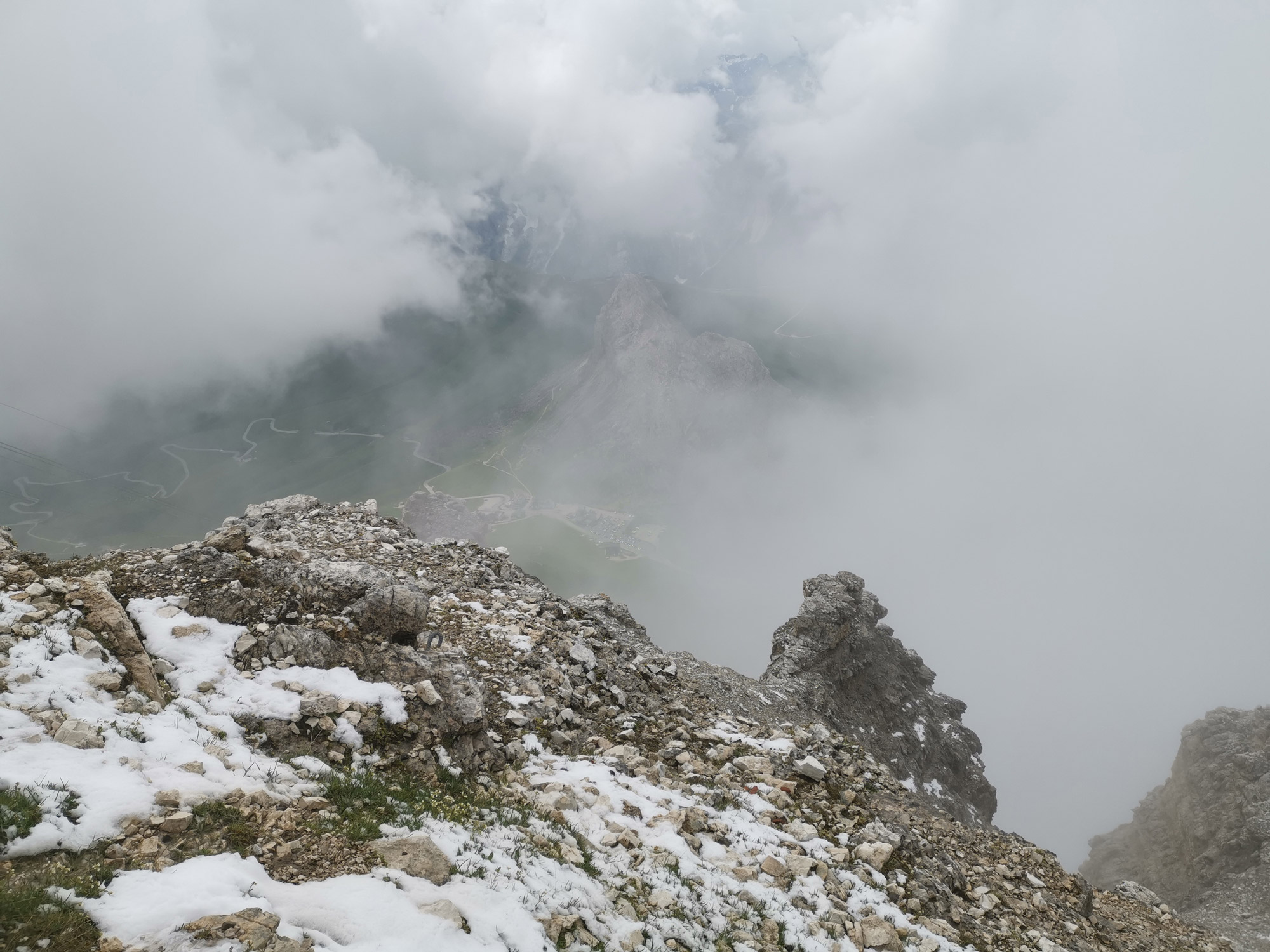 Kurz war die Sicht vom Sass Pordoi gut. Danach umhüllte es wieder der Nebel.
